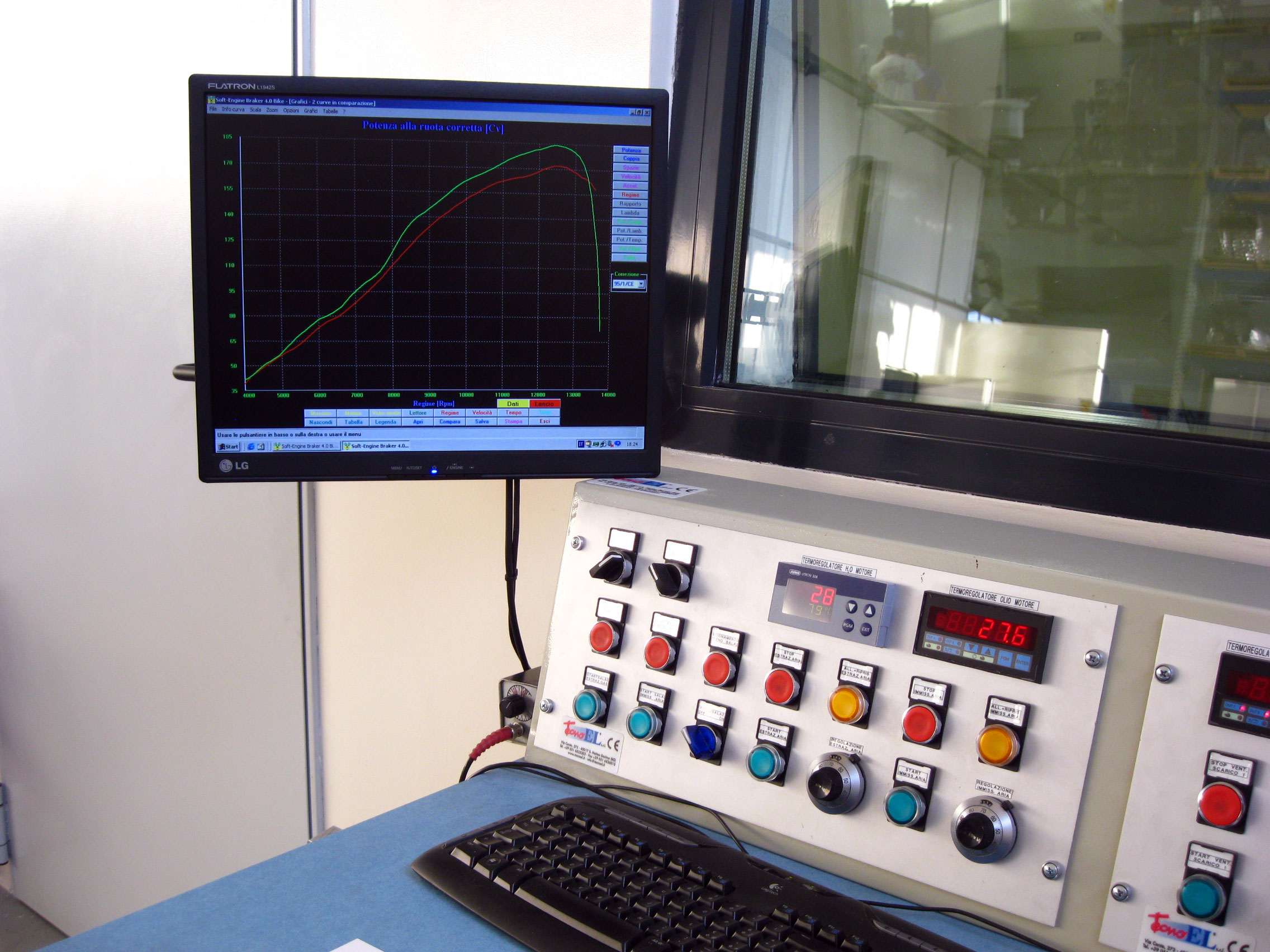 Sala prova motore con banco inerziale frenato “Soft Engine”.